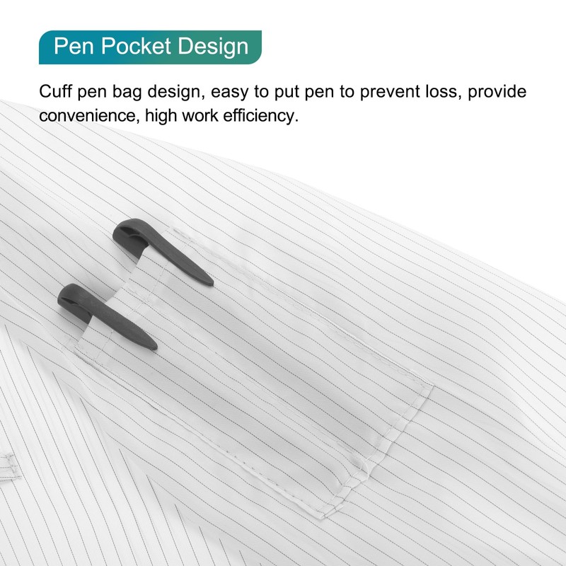 - [Cuff Elastic Design]: The cuff is designed with an elastic band, which can be adjusted according to the wrist circumference, while preventing dust from entering.[Pen Pocket Design]:Cuff pen bag design, easy to put pen to prevent loss, provide convenience, high work efficiency.