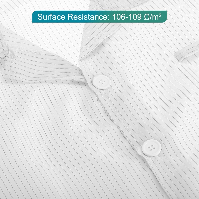 The Science Jacket Anti-static Smock Clothes are made of polyester filament and conductive fiber, it has excellent anti-static and dust-proof ability. Release the body's electrostatic charge.Easy to wear, dress it in the same way as normal clothes.