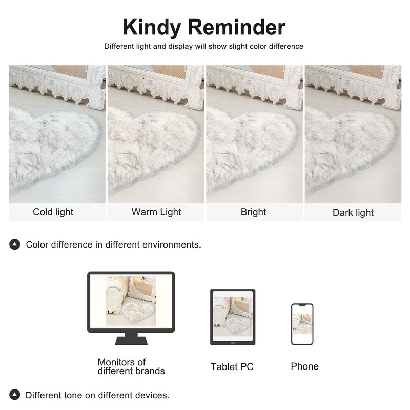 • Cute Heart Shape: Our fluffy carpet shape is different from other product. Heart shape shaggy rugs is suitable room and bedroom, which also will add a warm atmosphere to you