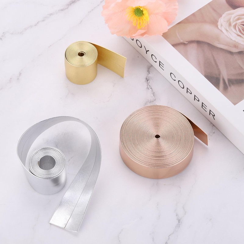 - Size: 5m x 15mm/197 inch x 0.6 inch (L x W) Thickness: 1mm/0.04 inch Material: Soft PU leather Color:Gold Package includes: 1 pcs x Shiny Flat Leather strips