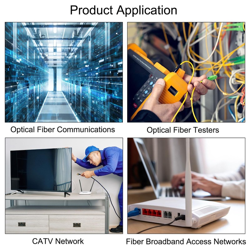 • Fiber optic adapters are widely used in red light pens, fiber optic sensors, optical power meters, fiber optic link transmission equipment, jumpers, and fiber optic communication equipment rooms. It is widely used in fiber optic distribution frames, fiber optic communication networks, fiber optic instruments with stable and reliable performance.