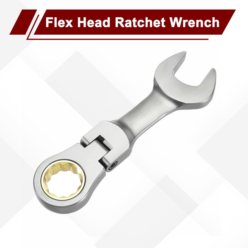 - Size - Specifications: 3/4"; Open Head Thickness: 9mm / 0.35"; Ratchet Head Thickness: 11mm / 0.43"; Overall Length: 134mm / 5.28"; Wrench Head Type: Flex Head; Ratchet Type: One-way; Package Content: 1 x Flex Head Ratchet Wrench.