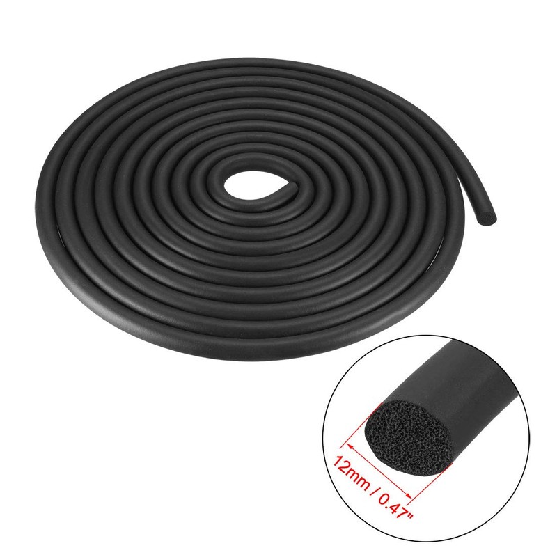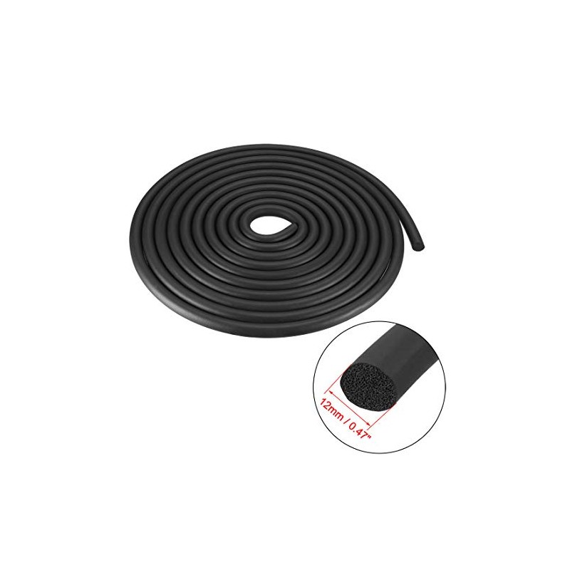sourcing map Foam Rubber Seal Weather Strip 12mm Diameter 5 Meters Long Black