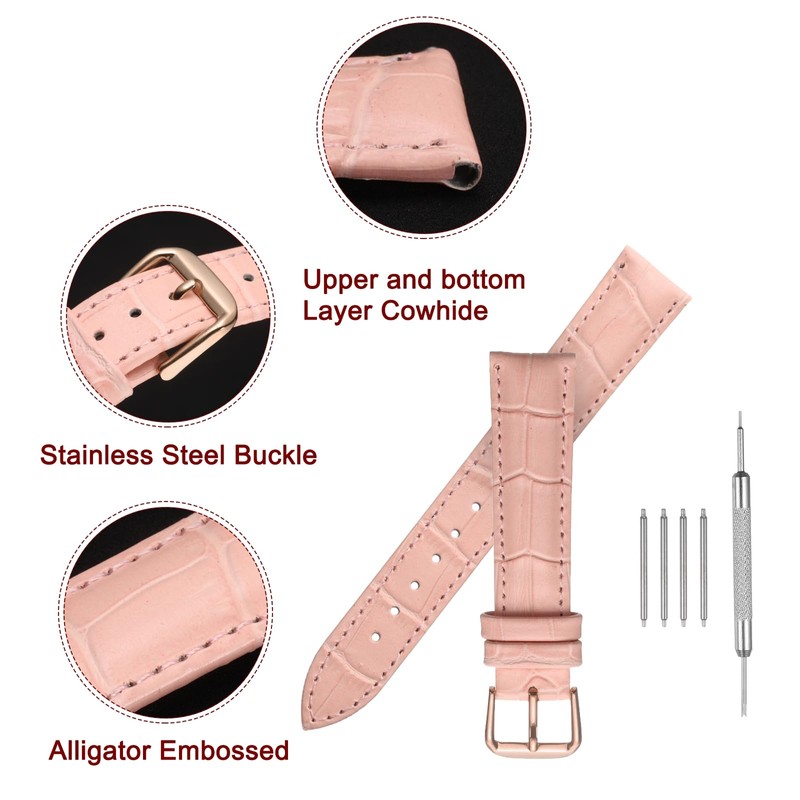 sourcing map Leather Watch Band 14mm Embossed Pattern Cowhide Watch Strap Replacement with Spring Bars for Men and Women, Pink Rose Gold