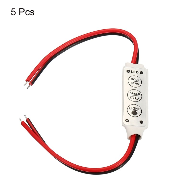 sourcing map LED Strip Controller, 12V to 24V 3 Keys Mini Brightness Adjustable Dimmer Lamp Switch for Single Color Strips, Pack of 5