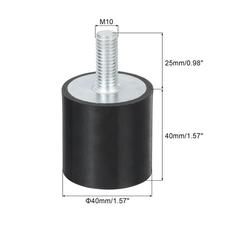 sourcing map M10 Thread Rubber Mounts, Vibration Isolators, Cylindrical Shock Absorber with Studs 40 x 40mm 4pcs