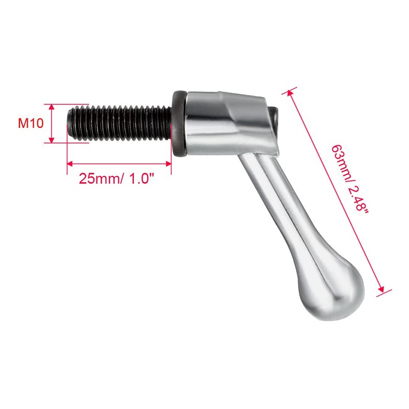 - Standard Thread Size: M10 (1.5mm Pitch); Bolt Length: 25mm / 1.0"; Lever Length: 63mm / 2.48"; Hex Socket Size: 5mm / 0.2"; Main Color: Silver Tone