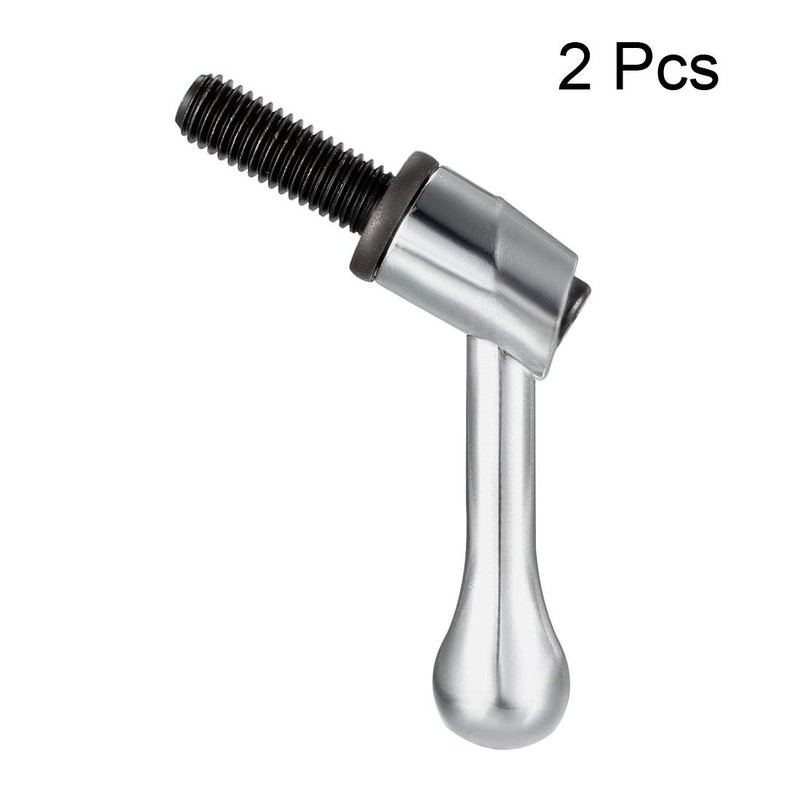 sourcing map M10 x 25mm Handle Adjustable Clamping Lever Thread Push Button Ratchet Male Threaded Stud Knobs Locking Rotating Screw Handles Quick Release Bolt Silver Tone 2pcs