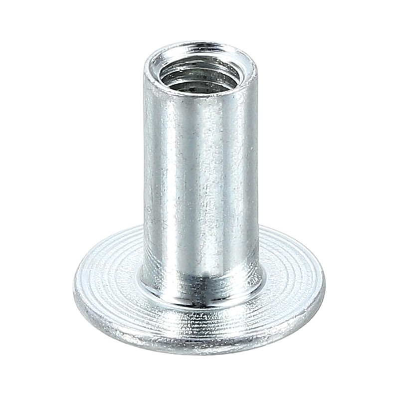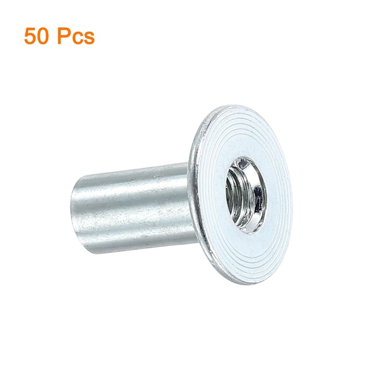 sourcing map M6 T-nuts, 50pcs Carbon Steel Tee Nut Round Base Weld Nuts 18mm Height Through Hole Flange Insert Female Thread Plate Nuts, Silver
