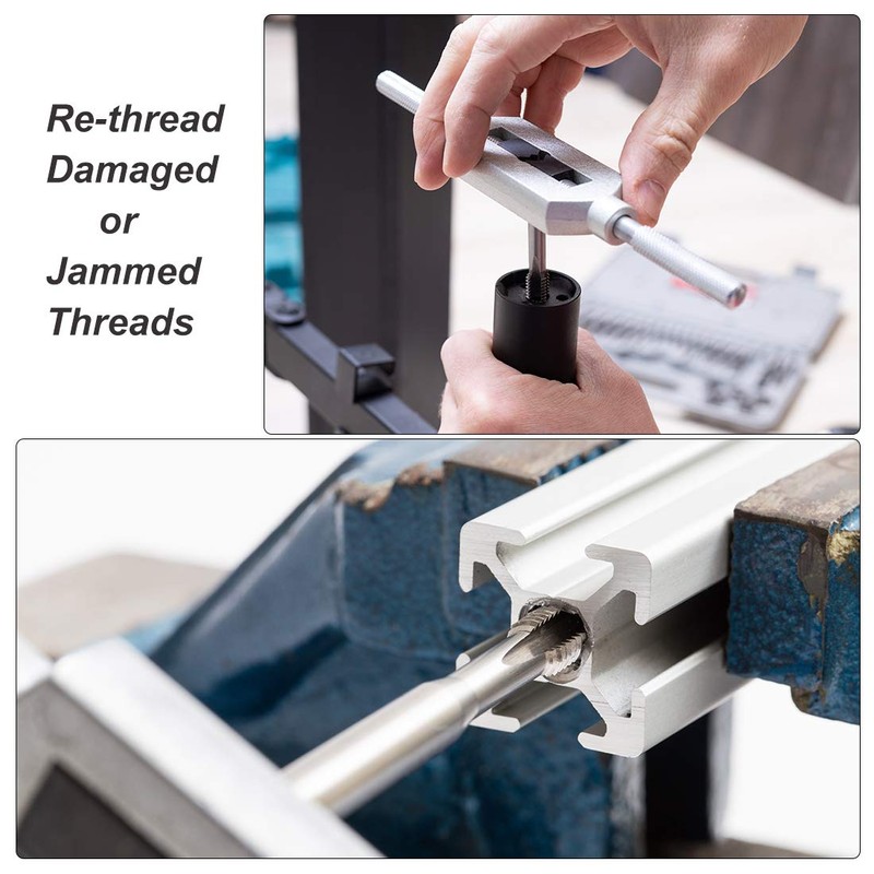 - Wide Applications: The thread tap kit is used to re-thread damaged or jammed threads. Suitable for tapping through or shallow holes in mild steels, aluminum, iron, copper, hard plastic.