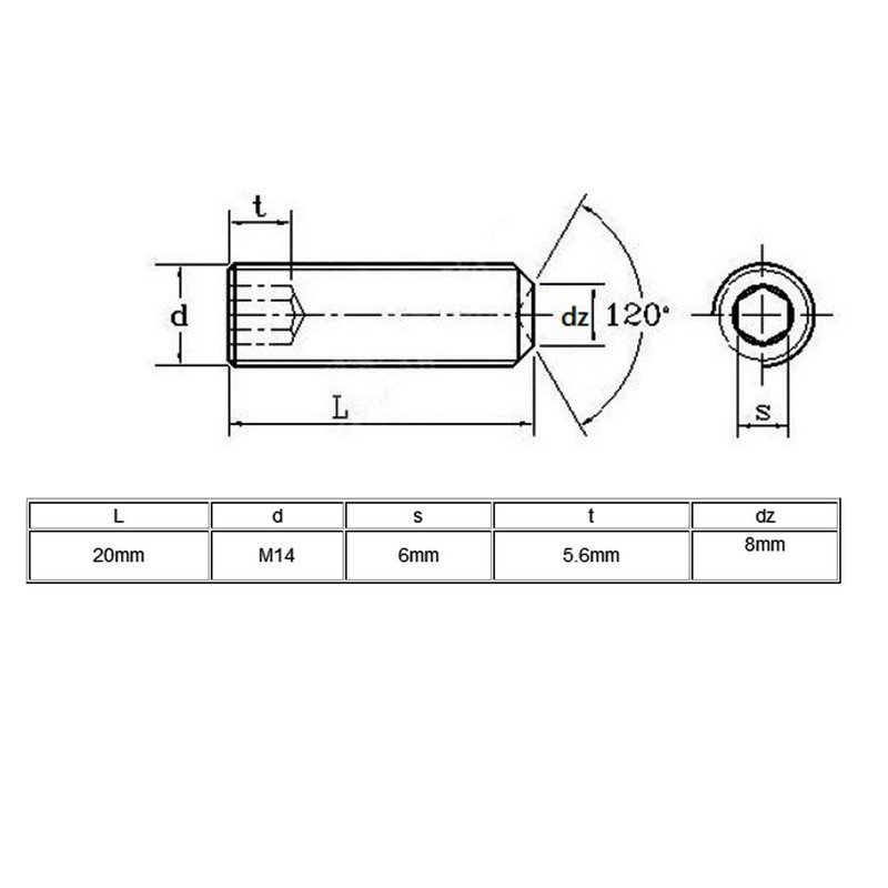 sourcing map Pack of 10 M14 Head Hexagon Socket Head Grub Screw Closure DIN916 20 mm Long