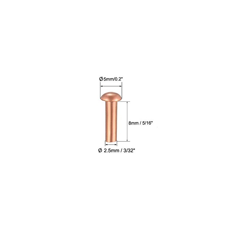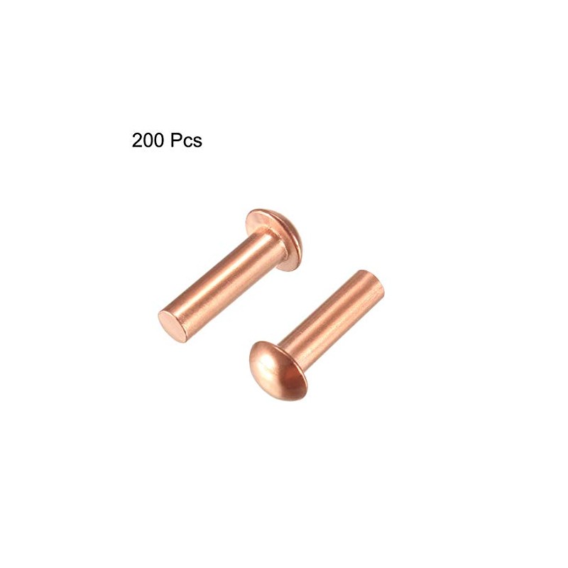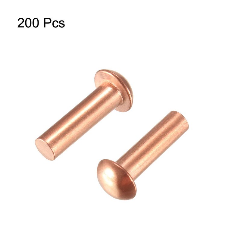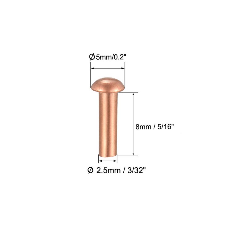 sourcing map Pack of 200 3/32" x 5/16" Round Head Copper Full Rivets Fixings