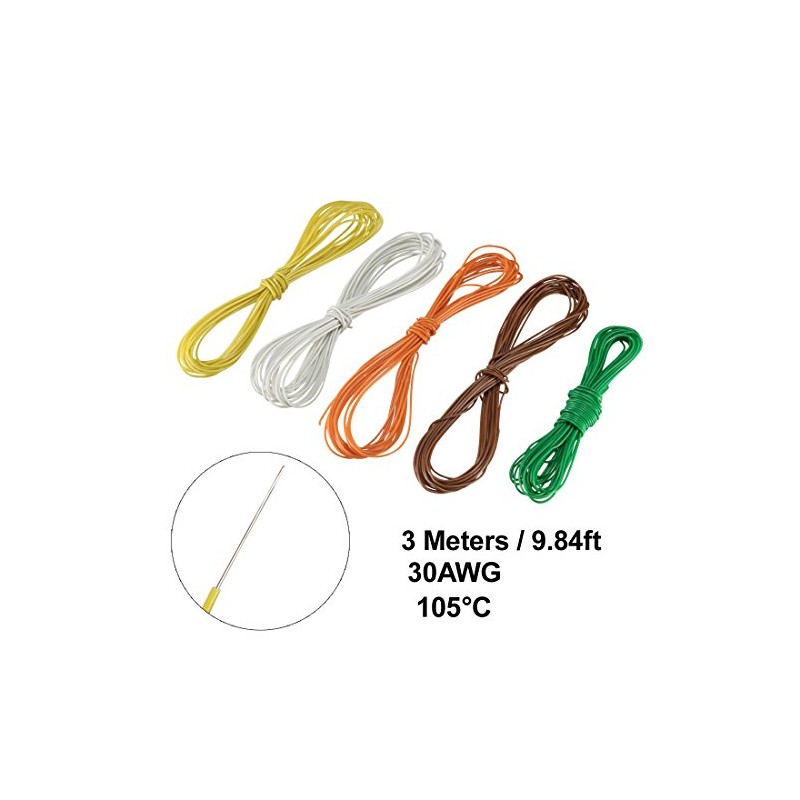 sourcing map Pack of 5 Winding Wire, Tinned Copper Wire, PCB Wires, Cable P/N DM-30-1000, 30 AWG, 3 Metres Length for Electronic Test