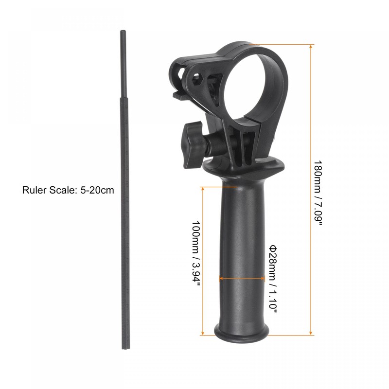 sourcing map Plastic Adjustable Side Front Auxiliary Hammer Handle for 13A Impact Drill, 41-44mm Clamping Range with Scale Depth Ruler