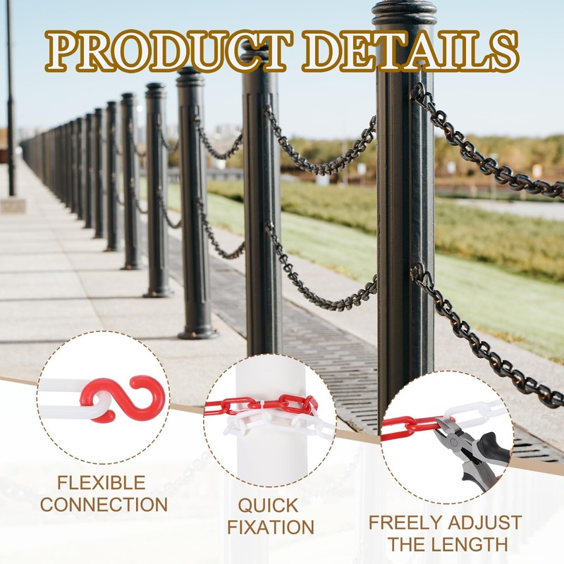 - With S-shaped chain links, buckle, and zip ties, the chain barriers are designed to be easily attached and removed, allowing you to customize the length of your barrier as needed. Simply tie the ends of the chain to posts or other sturdy objects using zip ties or other fasteners