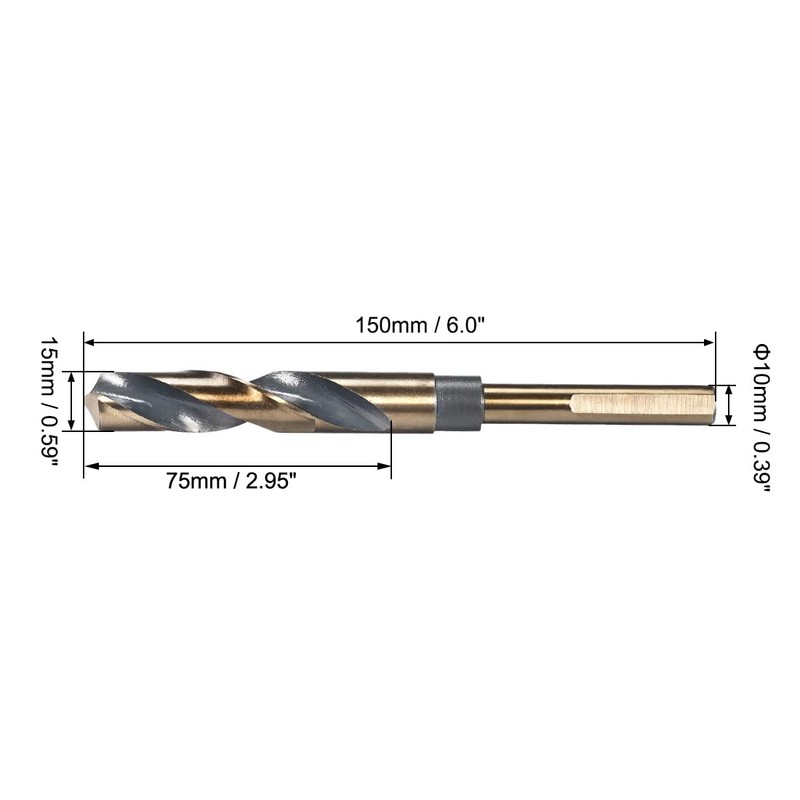 sourcing map Reduced Shank Twist Drill Bits 15mm High Speed Steel 4341 with 10mm Shank for Stainless Steel Alloy Metal Plastic Wood