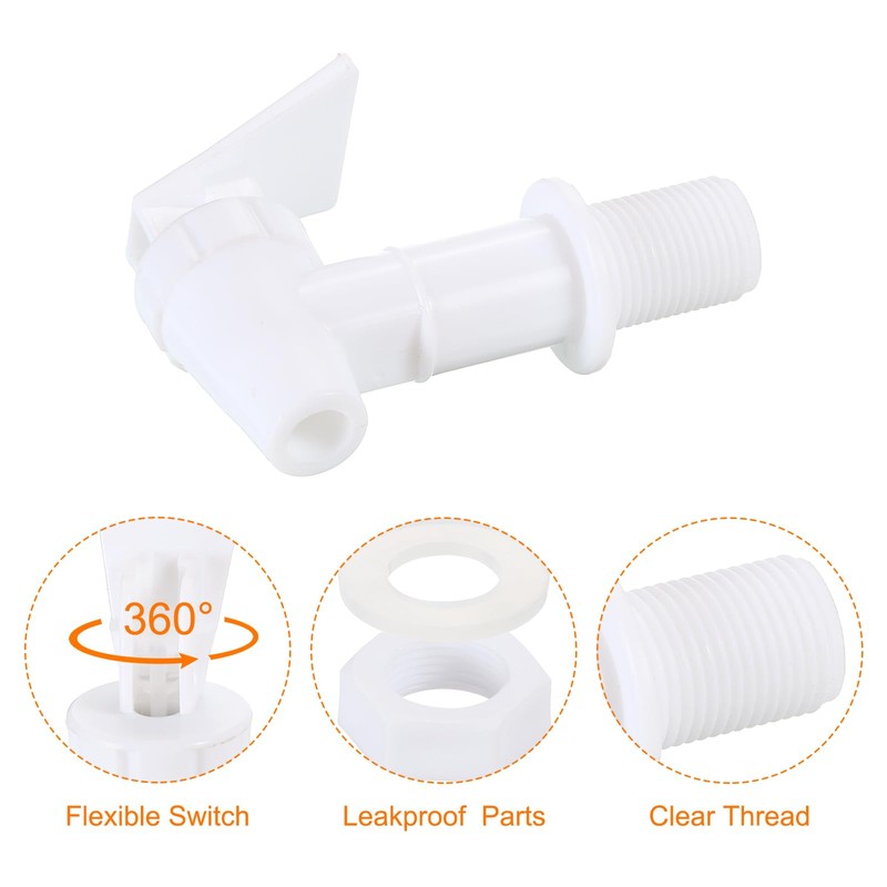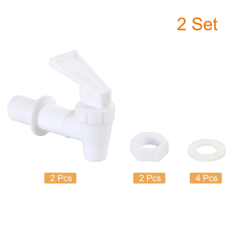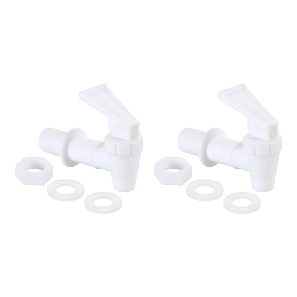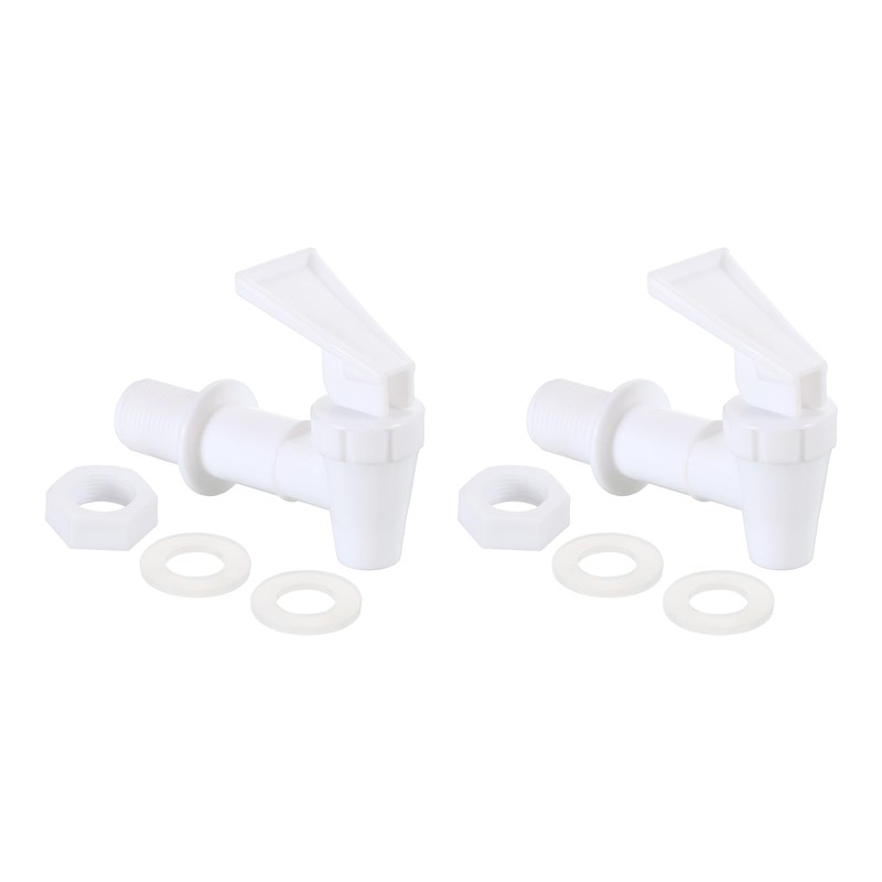 - PACKAGE INCLUDES 2 sets plastic faucets which are convenient for daily use and replacement:2 x water dispenser spigots, 4 x rubber washers, 2 x locking nuts
