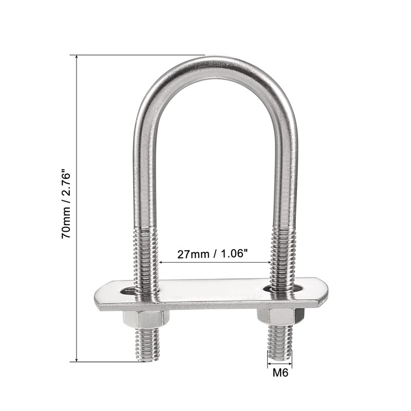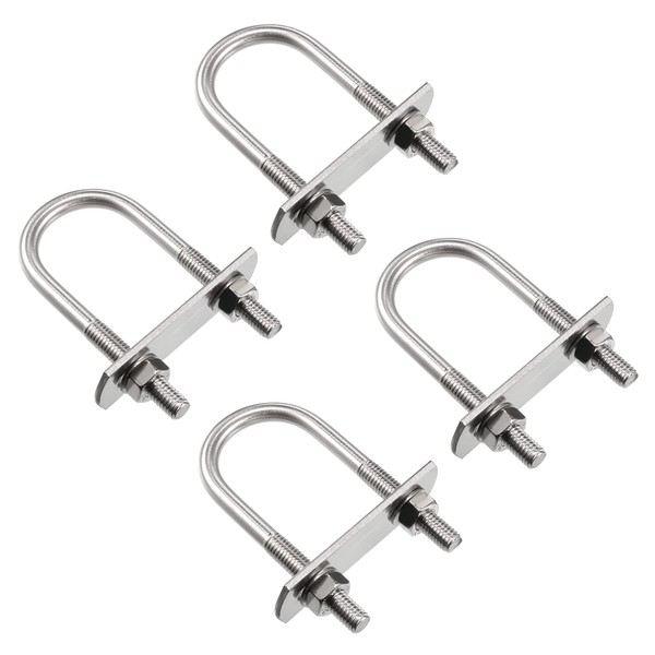 sourcing map Round U-Bolt 1.06"(27mm) Inner Width 70mm Length Steel M6 with Nuts, Plate, Washers 4 Set