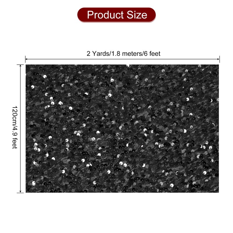 - The mesh sequin fabric, is in size: Length: 2 Yards/1.8 meters/6 feet; Width: 120cm/4.9 feet; Color: Black.