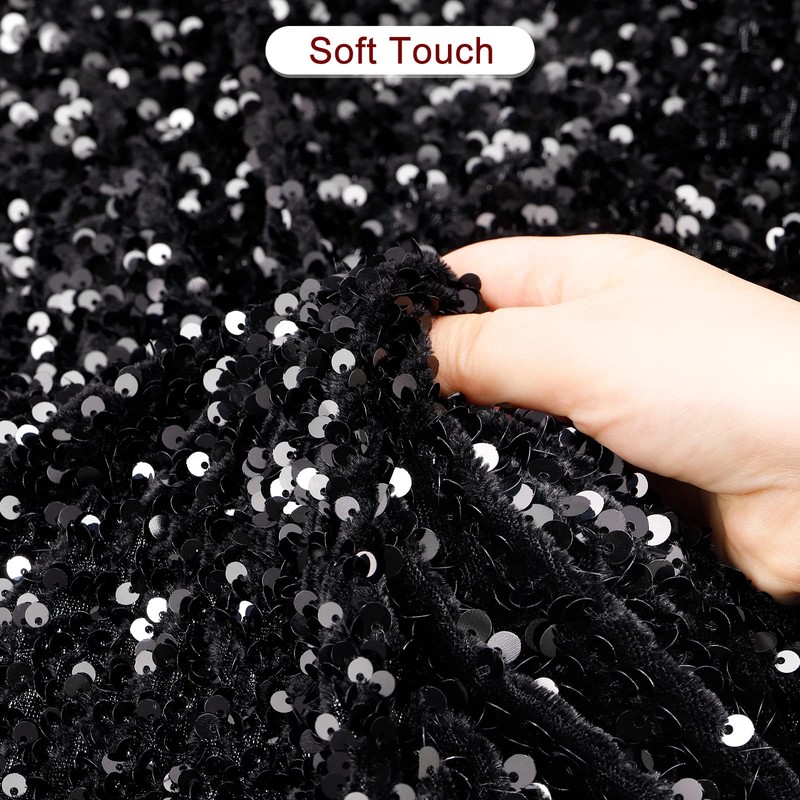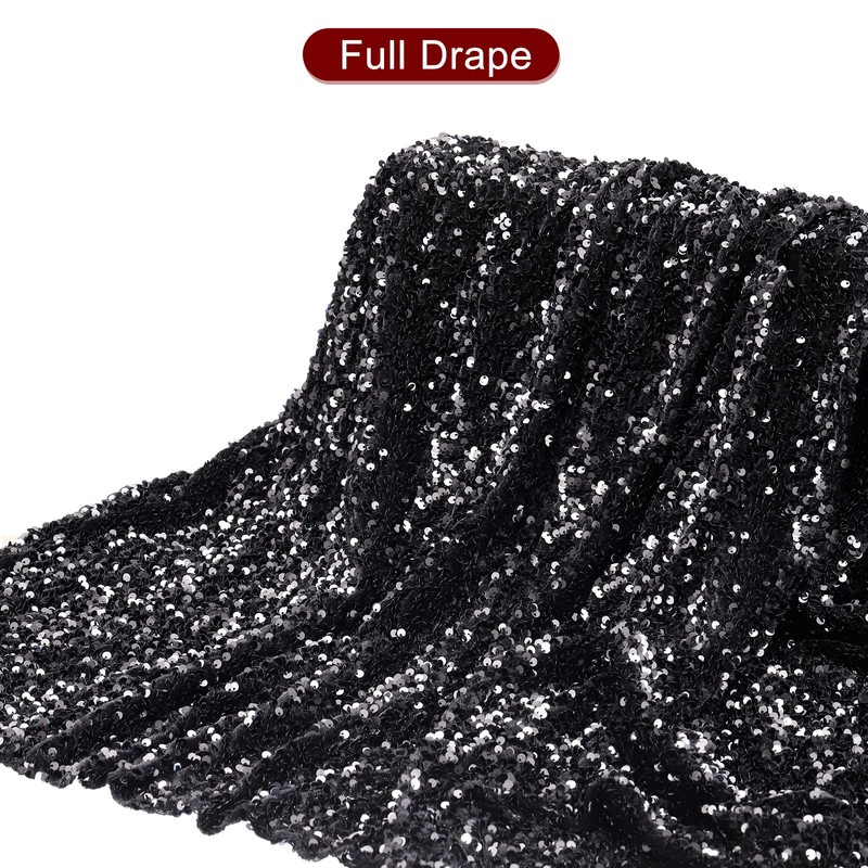 sourcing map Sequin Fabric Black, 2 Yards Length 3.9 Feet Wide Velvet Fabric, Mesh Fabric Full Glitter Sequins Fabric Sewing for Craft Clothes Decoration