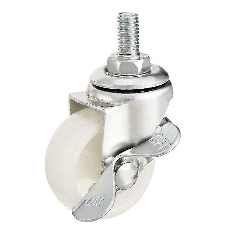 sourcing map Set of 4 Swivel Castors 1.5 Inch Nylon M8 x 15 mm Thread Wheels with Brake White