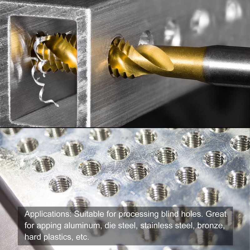 - Applications: Suitable for processing blind holes and sticky materials. Great for drilling and tapping aluminum, die steel, stainless steel, bronze, hard plastics, etc.