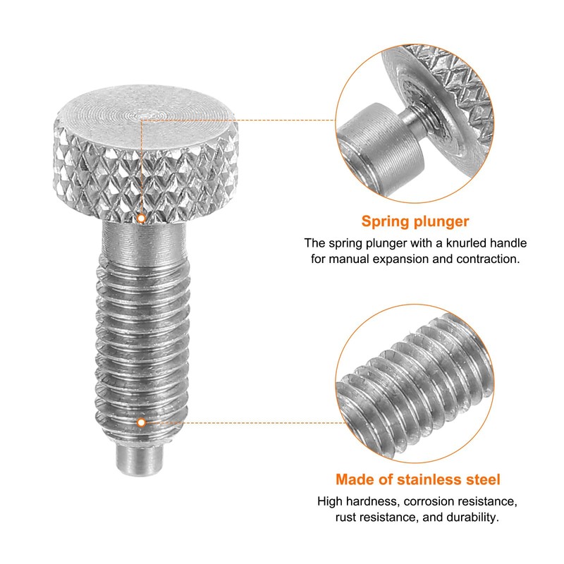 - Feature - The spring plunger with a knurled handle for manual expansion and contraction. And equipped with nuts to lock in various mechanical equipment.