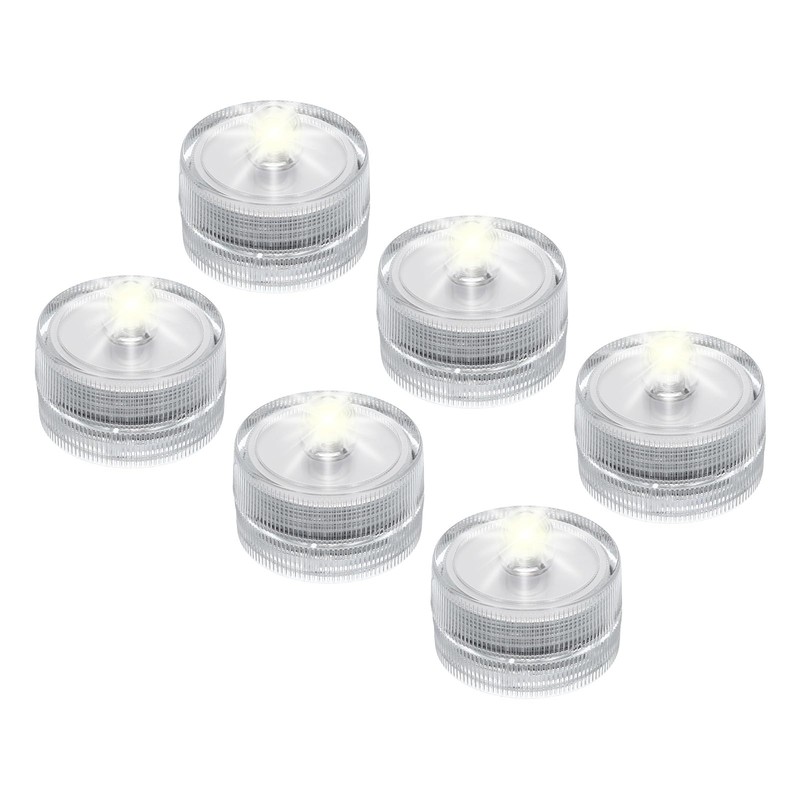 sourcing map Submersible Bright LED Tea Light, White Waterproof Flameless Candles for Party Wedding Festivals Decor, Pack of 6