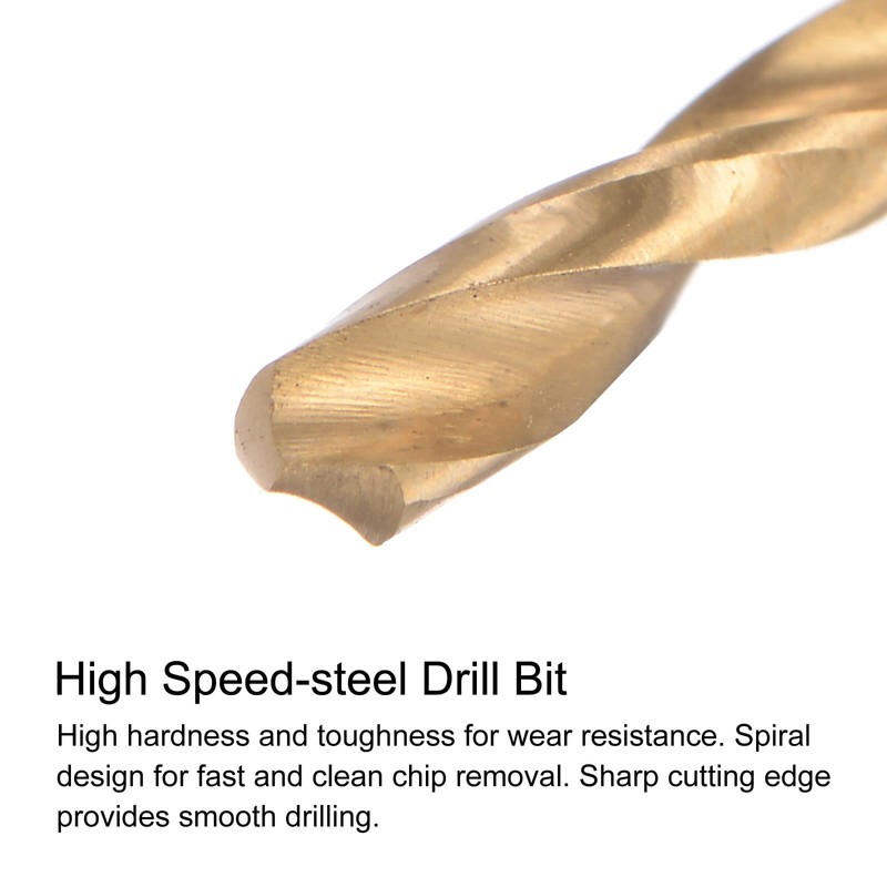 - Twist Drill Bit: Spiral chip space design for fast and clean chip removal. Sharp cutting edge provides smooth cutting and no glitches. Titanium coating provides excellent corrosion resistance and wear resistance. It has high hardness and toughness for wear resistance.
