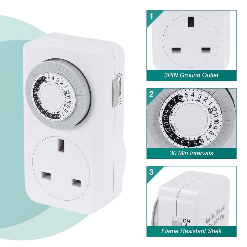 - Easy to use: Support custom timing from 30 minutes to 24 hours at any time, without complex operations, just a simple twist to complete the timing. Flame Resistant & Long Lifespan: The shell is made of flame-retardant PC material, which has good flame retardancy and excellent durability, greatly improving its service life. Wide Application: Support timed power-off in various scenes, including but not limited to household appliances, street lights, stage lighting effects, office buildings, etc.