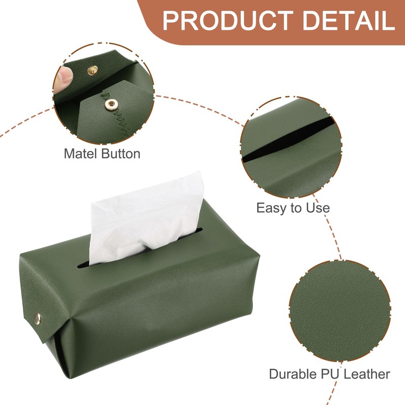 sourcing map Tissue Box Cover with Button Rectangle Tissue Box Holder PU Leather Facial Tissue Paper Dispenser for Tabletop Bathroom Bedroom Kitchen (Dark Green, 6.7 x 4.3 x 3.1 Inch)