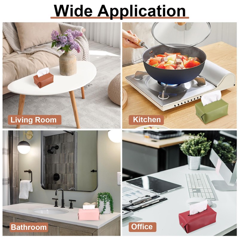 - Wide Application: This tissue holder box is a multipurpose tissue box that holds tissue, wipes, gloves, garbage bags, and more. This facial tissue holder is suitable for use in bathrooms, vanities, sinks, nightstands, and office tables, providing an aesthetic storage solution