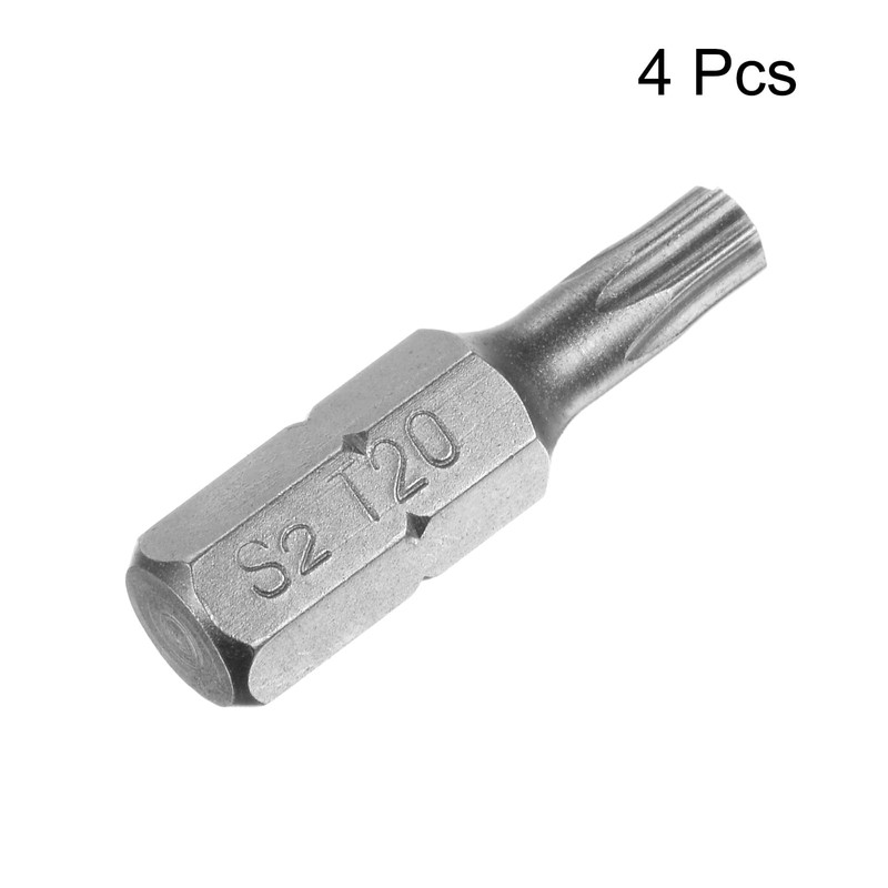 sourcing map Torx Bits 1/4 Inch Hex Shank 25 mm Length Magnetic Screwdriver T20 Screwdriver Bit S2 Alloy Steel Pack of 4