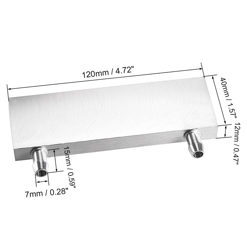 sourcing map Water Cooling Block with Nozzle on the Long Side for CPU Graphics Cooler 40 x 120 x 12 mm