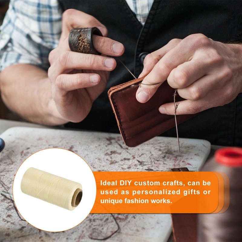 - 150D flat waxed thread is made of multiple polyester threads braided and covered with wax, which is tough and durable, not easy to break, and has high tensile strength; The waxed cord is soft and not easy to deform. The perforated sewing is smooth and flexible. It can withstand high temperatures and is easy to seal, cut, knot, and sew; it can be used for most leather DIY projects; Rich in colors, made of braided polyester, the thread is lightly waxed and coated, waterproof and non-fad