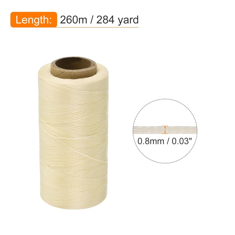 sourcing map Waxed Thread,284 Yard 0.8mm 150D Flat Wax Thread Polyester Waxed String for Leather Sewing Hand Weaving Book Binding Home Decoration,Cream White