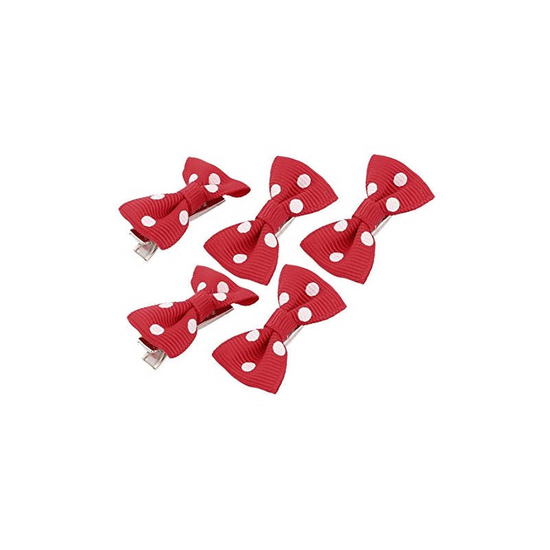 Sourcingmap Pet Dog Dots Pattern Bowknot Grooming Hairpin Barrette Clip, Red, 5-Piece