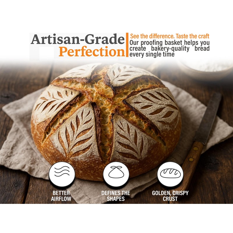- BAKE ARTISAN LOAVES AT HOME: Achieve bakery-quality sourdough at home using our banneton proofing basket oval set. The breathable cane structure absorbs moisture, forming a crisp crust and rustic spiral pattern