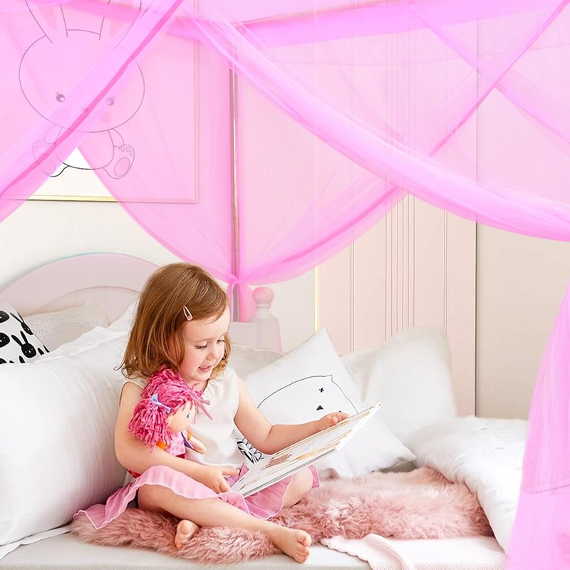 - 🎁Perfect for Girls: Our 4 posts bed canopy is designed to fit Twin size beds perfectly for Girls' bedrooms, providing ample coverage and space for your princess to sleep comfortably. Adding a touch of whimsy and magic to the PRINCESS bedroom. The pink color and playful net design will delight any Princess. Suitable for children ages 2 and up, it's a desired gift for every girl who wants to feel like a princess.