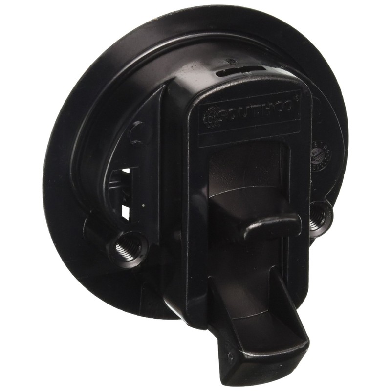Low profile. Corrosion resistant. Simple 2" round hole installation. Mounts in panels up to .875" thick. Includes M5 Phillips pan head mounting screws. Includes tab for inside actuation. Maximum working load 60 lbs. Ultimate load 120 lbs. Black polycarbonate with stainless steel spring, keeper and screws.