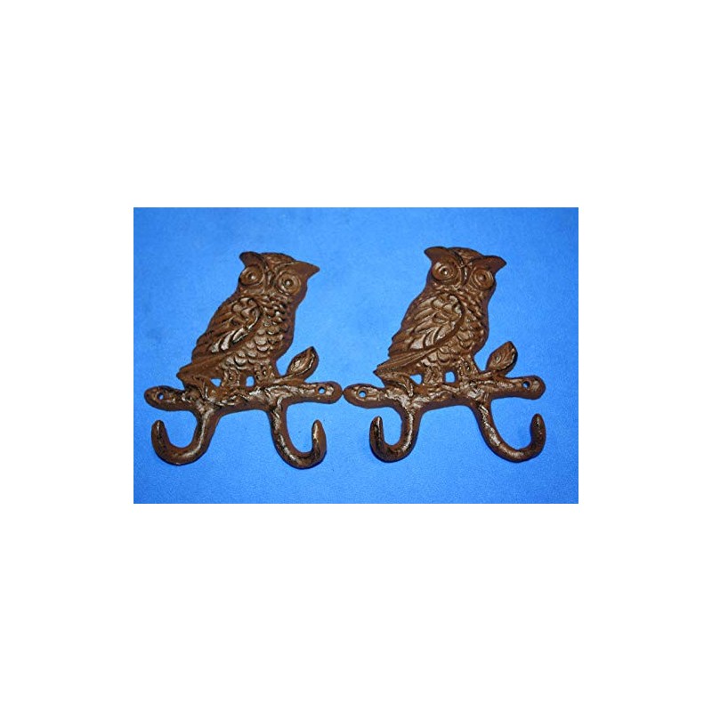 Southern Metal Owl Wall Decor Bath Towel Hooks Rustic Cast Iron Horned Owl Design, 7 3/8" Tall, 2 Pieces ~ H-56