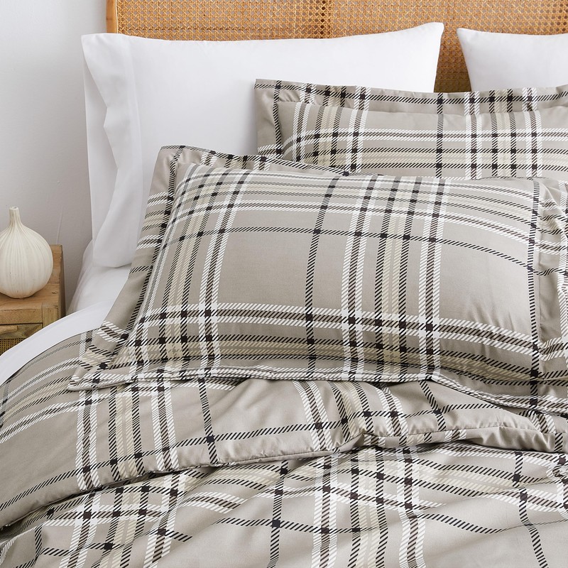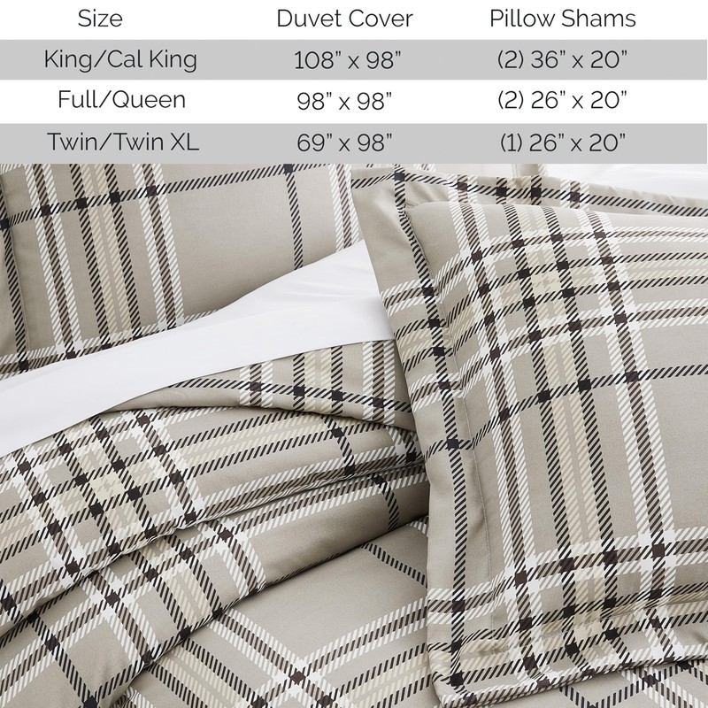 Southshore Fine Living, Inc. Oversized California King/King Duvet Cover Set – Hotel Quality, Easy Care, Fade-Resistant Bedding – Includes 1 Duvet Cover and 2 Pillow Shams, Vilano Plaid Mocha