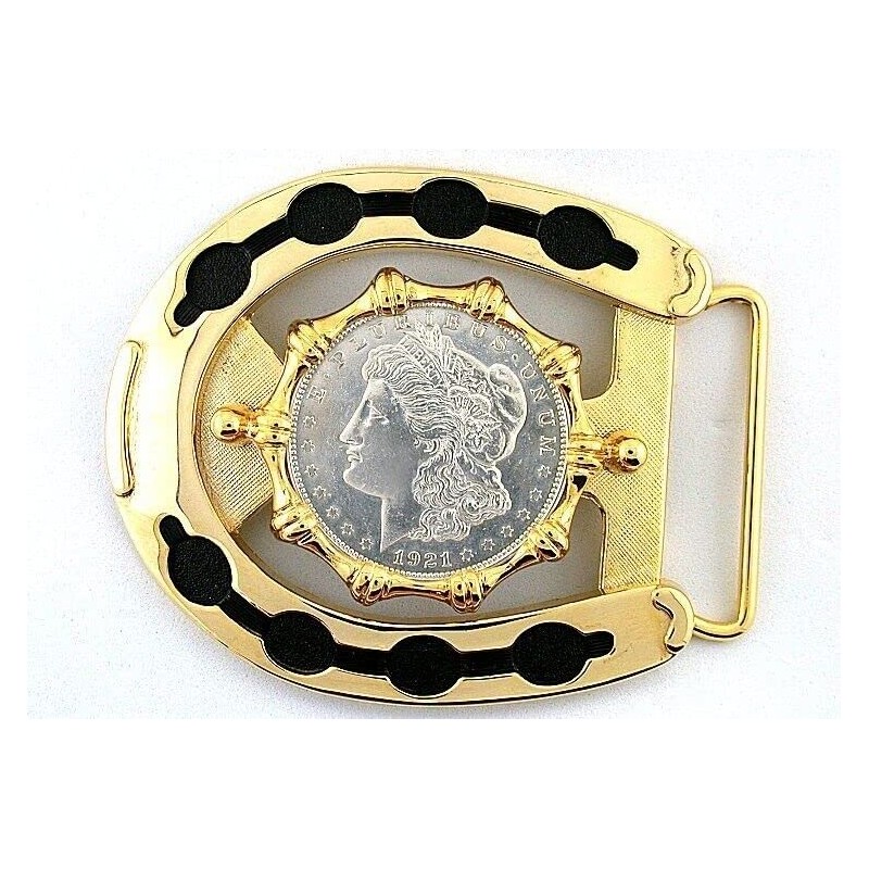 Southwest Western Horseshoe 1921 Morgan Silver Dollar Belt Buckle EBS4985
