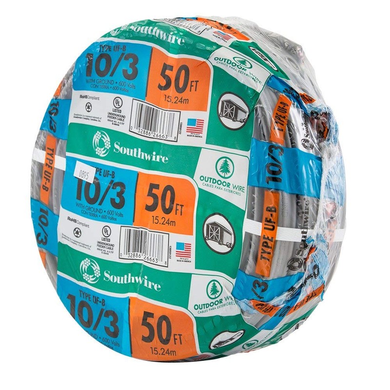 Southwire 13059122 50 ft. 10/3 Grey Solid CU UF-B W/G Wire,Grey