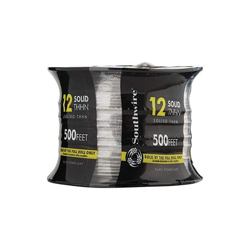 SOUTHWIRE COMPANY LL 11588158 12/1 Thhn Solid Wire, 500 Ft, White