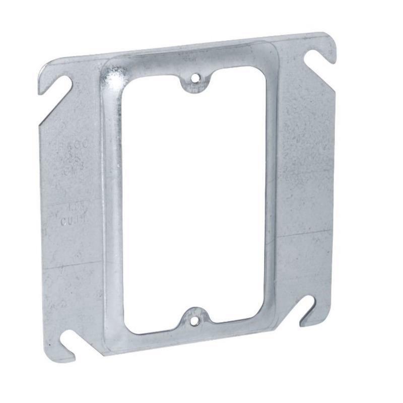Square 1-gang device ring IS used with 4 in. square boxes. It is made to mount switches, receptacles, and devices in a variety of settings. The angled slots on the covers compensate for up to 1/2 in. of box misalignment on upright framing members. Additionally, this ring is UL and RoHS compliant for safe use.