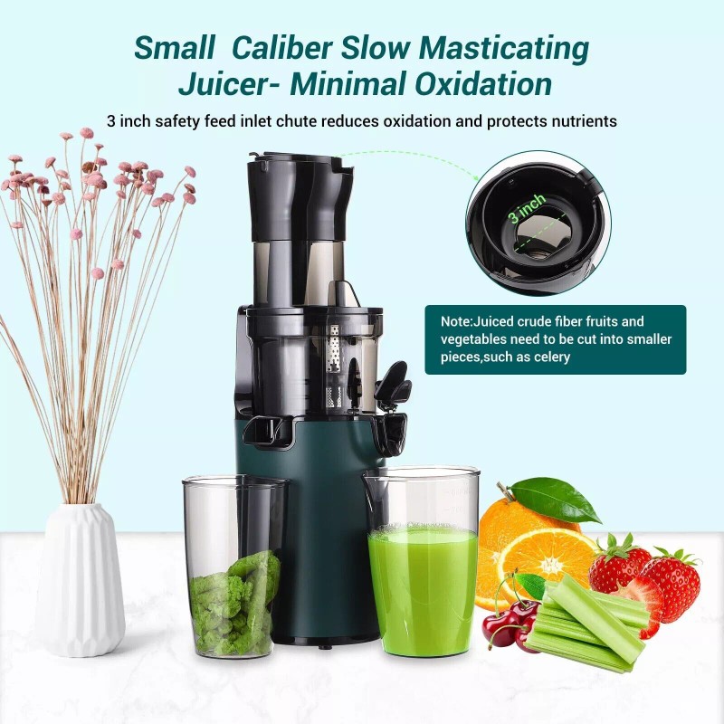 Compared to traditional juicers, a slow juicer machine will not destroy nutrients and vitamins, and preserves the nutrition and natural taste of food. cold pressed juice is an effective way to obtain nutritional enzymes and antioxidants. Pure juice without residue, fewer bubbles, no layering, and better taste. Juicer machine for fruit and vegetable.