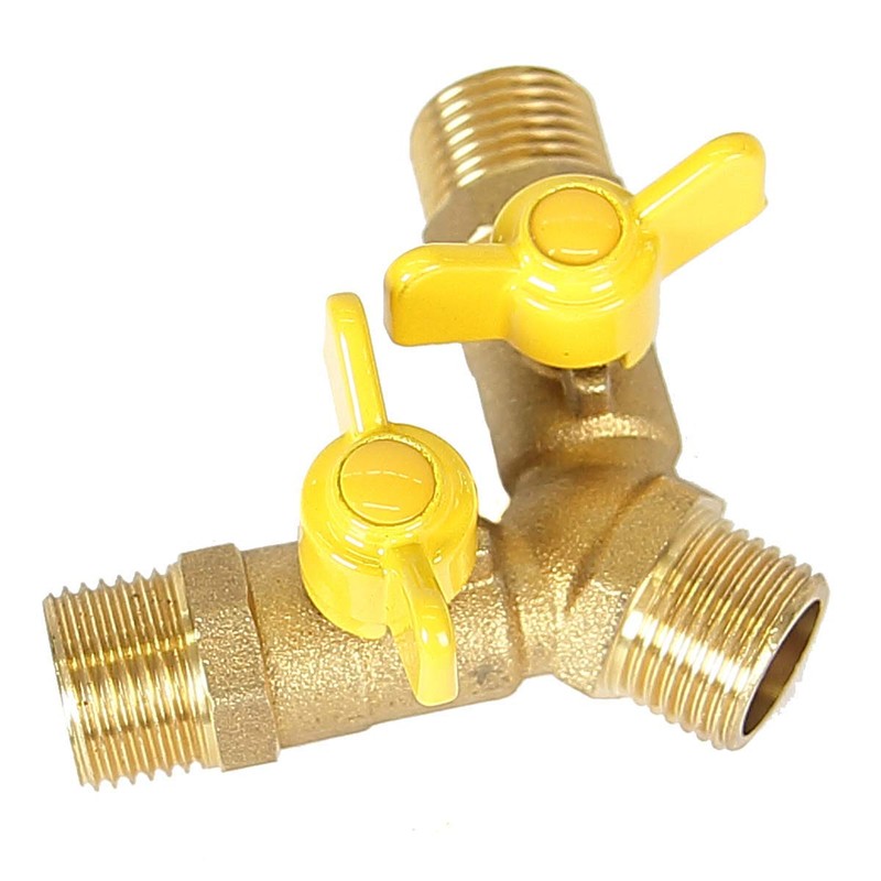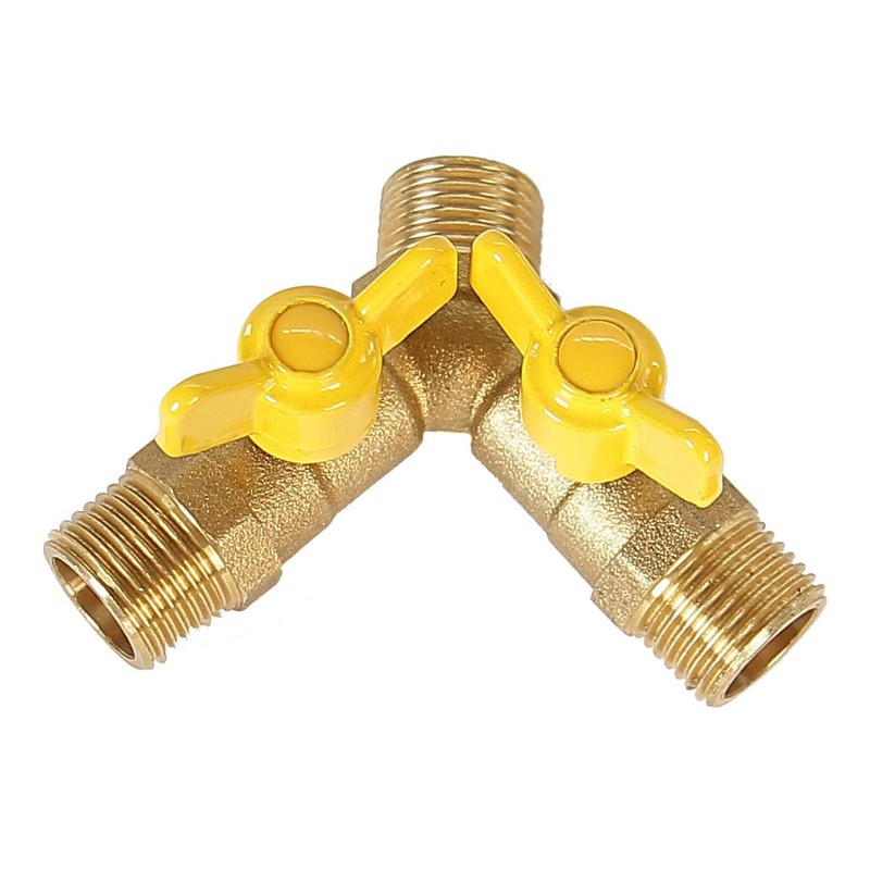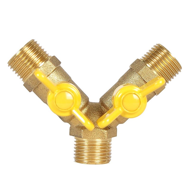 - Y-splitter with 1/2 inch (approx. 21 mm) external thread input and two external threads 1/2 inch (approx. 21 mm) output for connecting two nozzles or other inlets.