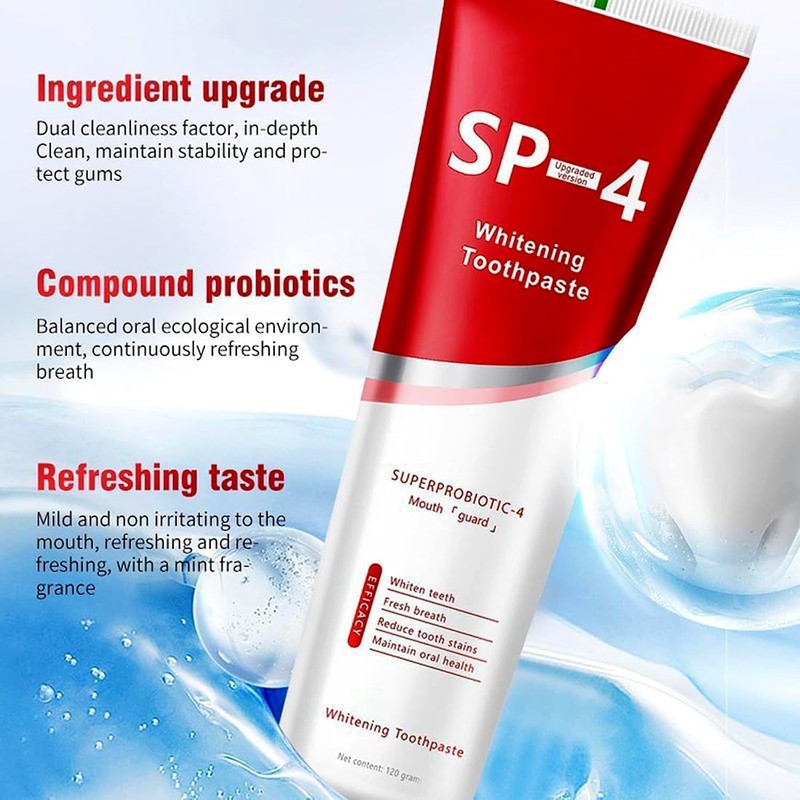 Sp-4 Toothpaste White Teeth, Sp-4 Probiotics Bright White Toothpaste, Ultra Whitening Toothpaste Sp-4, Fresh Breath, Deep Cleansing Care Toothpaste (Pack of 2, Super Probiotics-4)