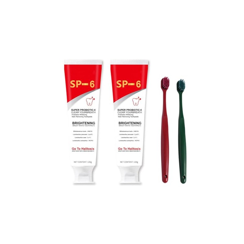 SP-6 Probiotics White Toothpaste with 2Toothbrush Toothpaste Sp-6 Brightening, Deep Cleaning Oral Care Toothpaste